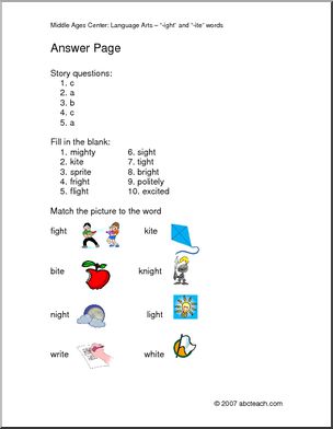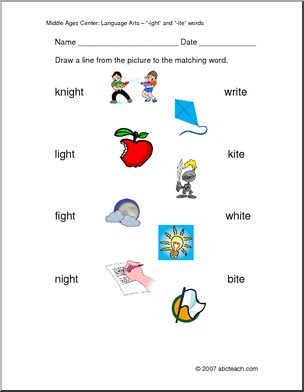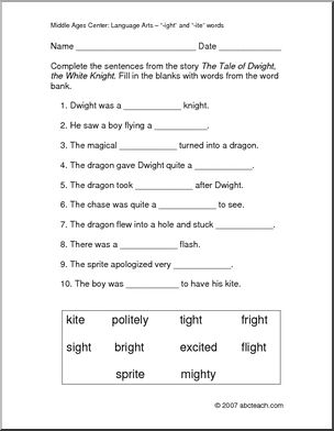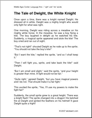 Our funny fiction tale of a white knight, followed by worksheets for practicing the -ite and -ight spelling.