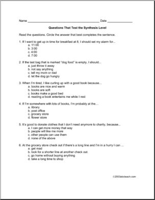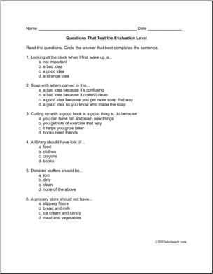 A one-page reading comprehension (about reading!) comes with 5 pages of questions to test the skills defined by Bloom’s taxonomy: comprehension, application, analysis, synthesis, and evaluation.
