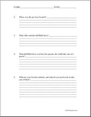 Rikki loves her pets, and she wants another one: a parrot. Will she get one? Find out with this realistic fiction reading comprehension, with short answer questions.