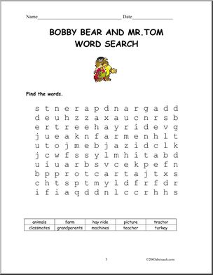 Bobby Bear’s field trip to a farm leads him to an unusual friend. This holiday-themed lesson includes a reading comprehension, a crossword puzzle, and a word search.