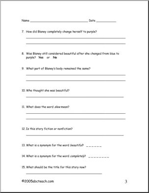 Blaney was a beautiful blue frog…until she started turning purple. A simple and imaginative reading comprehension.