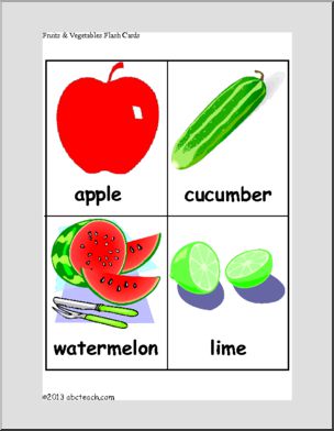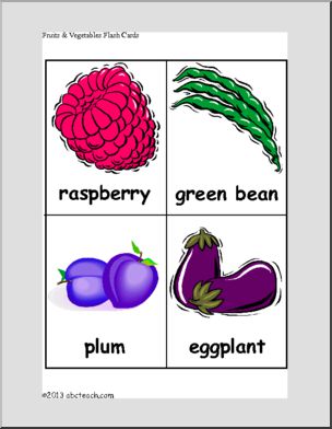 Illustrated flash cards to use alone or correspond with fruit and vegetable bingo game.