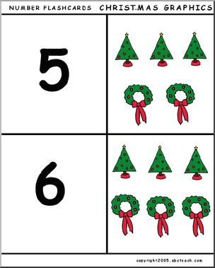 Cards have the numeral on the left and a graphic representation (6 = 3 wreaths and 3 trees) on the right. Numbers from 1 to 10.