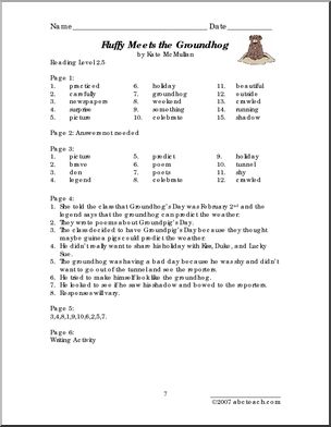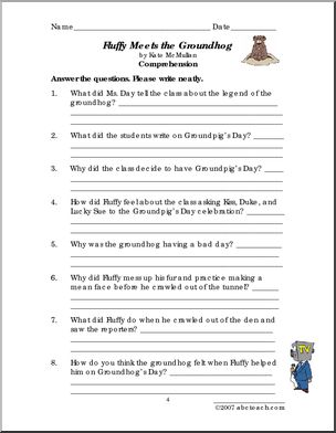 Use this ‘Book: Fluffy Meets the Groundhog (elem)’ printable worksheet in the classroom or at home. Your students will love this ‘Book: Fluffy Meets the Groundhog (elem)’. Review comprehension and vocabulary from Kate McMullan’s story of a loveable class guinea pig on Groundhog Day.