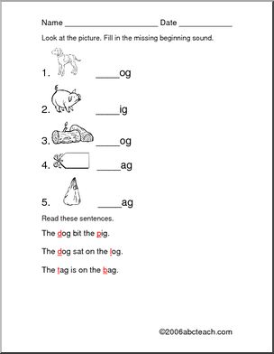 Content / Language Arts / Phonics / Phonics Worksheets / Beginning Sounds