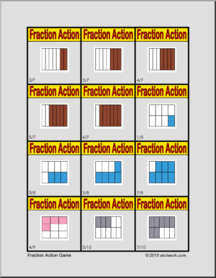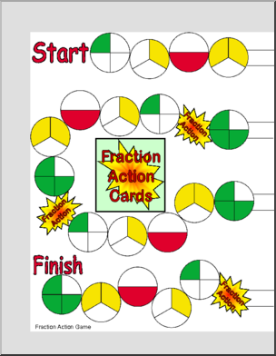 This Fraction Action Folder Game is perfect to practice fraction skills. Your elementary grade students will love this Fraction Action Folder Game. A colorful board game where players identify fractions to move along the board. Includes game board, cards, spinner, game pieces, and instructions for game play. Laminate for a fun, resuable classroom game.