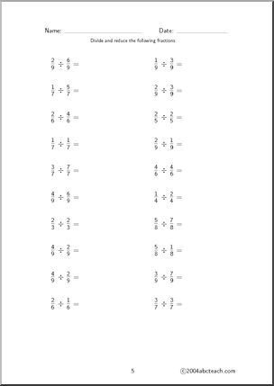 This Fraction Division (set 2) Worksheet is perfect to practice fraction division skills. Your elementary grade students will love this Fraction Division (set 2) Worksheet. Printable fraction/division worksheets working with single digits, unlike fractions; 5 pages long.