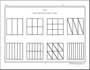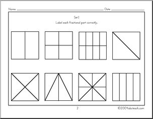 This Fraction Naming (set I) Worksheet is perfect to practice geometry skills. Your elementary grade students will love this Fraction Naming (set I) Worksheet. Students use a geometric model to name basic fractions. This lesson works well alone or in conjunction with the “Equivalents to One” lessons.