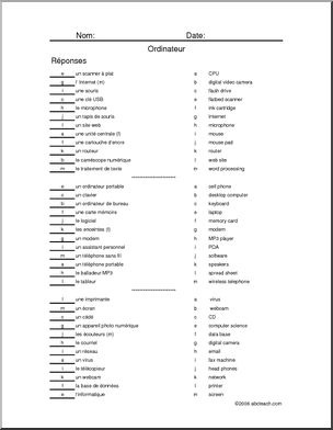 Matching activity for computer terms. Exercise d’association pour le vocabulaire de l’ordinateur.