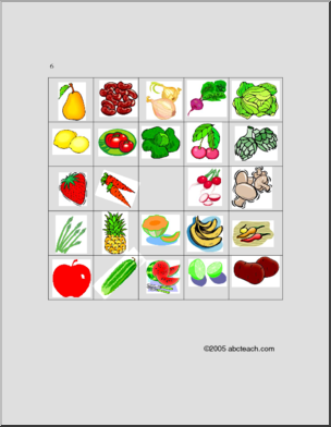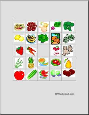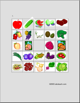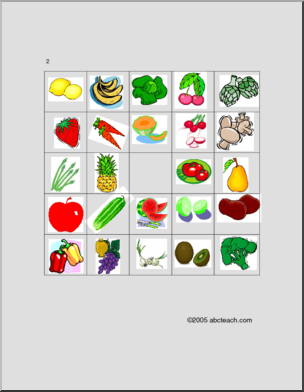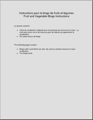 Fruit and Vegetable picture bingo, including associated images and vocabulary. Fruits et LÈgumes, bingo en images