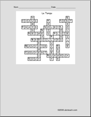French crossword puzzle with weather vocabulary. Mots-croisÈs avec le vocabulaire du temps.