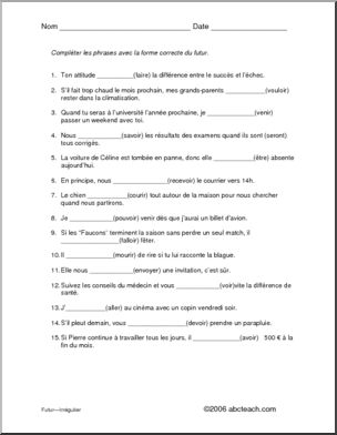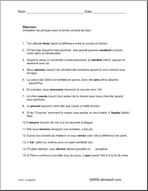 Practice verbs in the future tense; three options, crossword and fill in the blank. Exercices pour renforer les verbes au futur. Choix de trois formats diffÈrents.