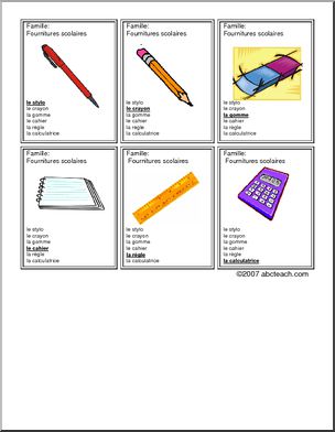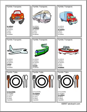 Seven Families card game 2. Senses, weather, pets, transportation, table, shapes and school supplies. Jeu de sept famillies 2. Sens, temps, animaux domestiques, transports, table, formes et fournitures scolaires.