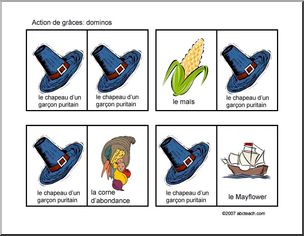 Dominoesópractice Thanksgiving vocabulary. Dominosórenforcer le vocabulaire de lÃaction de gr‚ces.