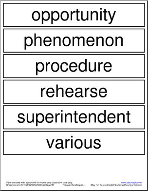 Use this ‘Word Wall: Frequently Misspelled Words (list 11)’ printable worksheet in the classroom or at home. Your students will love this ‘Word Wall: Frequently Misspelled Words (list 11)’. [made with abctools] 20 frequently misspelled words, from AISLE to VARIOUS