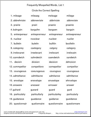 Content / Middle School/Junior High / Writing / Frequently Misspelled Words