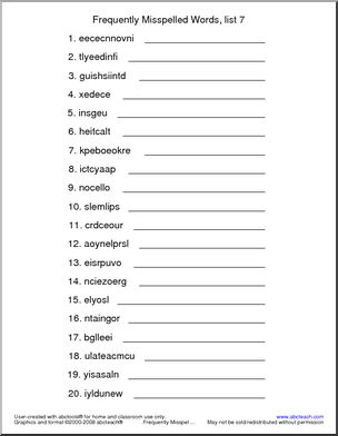 Use this ‘Spelling Set: Frequently Misspelled Words (list 7)’ printable worksheet in the classroom or at home. Your students will love this ‘Spelling Set: Frequently Misspelled Words (list 7)’. A complete set of all our materials for list 7 frequently misspelled words, from ACCUMULATE to UNWIELDY