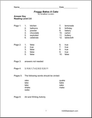 Use this ‘Book: Froggy Bakes a Cake (primary)’ printable worksheet in the classroom or at home. Your students will love this ‘Book: Froggy Bakes a Cake (primary)’. Review comprehension and enhance vocabulary with this book unit, which accompanies Jonathan London’s story about a frog learning to bake.