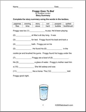 Use this ‘Book: Froggy Goes to Bed (primary)’ printable worksheet in the classroom or at home. Your students will love this ‘Book: Froggy Goes to Bed (primary)’. Review comprehension and enhance vocabulary with this book unit, which accompanies Jonathan London’s story about a frog learning to go to bed.