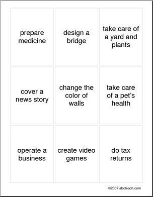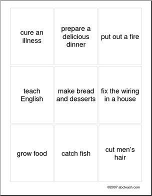 “Can you cure illnesses?” “No, I can’t. I am a firefighter.” Oral activity to practice vocabulary of professions and the use of “can” and “can’t” in short question answers.