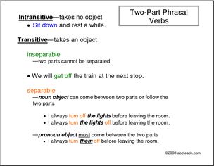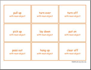 Card game to practice manipulating phrasal verbs–intransitive, transitive, separable, inseparable. Intermediate level.