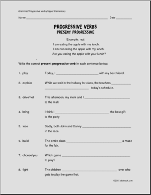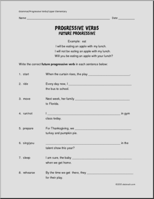 These activities reinforce past, present and future progressive verbs for upper elementary students.
