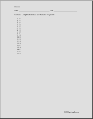 Grammar – Sentences (upper elementary) Worksheet