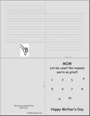 B/W foldable,greeting card for St. Patrick’s Day with lines to write greeting and drawings to color.
