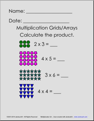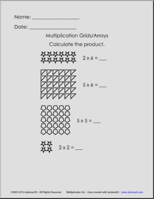 This Grids and Arrays Set (elem) Multiplication is perfect to practice multiplication skills. Your elementary grade students will love this Grids and Arrays Set (elem) Multiplication. Complete set includes 3 colorful teaching pages and 3 student worksheets with answer pages.;