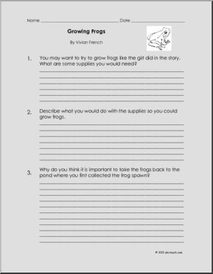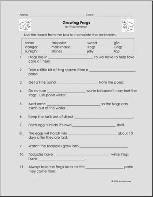 Use this ‘Book: Growing Frogs (primary)’ printable worksheet in the classroom or at home. Your students will love this ‘Book: Growing Frogs (primary)’. A six page unit of activities for the book Growing Frogs by Vivian French. Includes a page each of completion, true/false questions, a word unscramble with a word bank, a combined reading […]