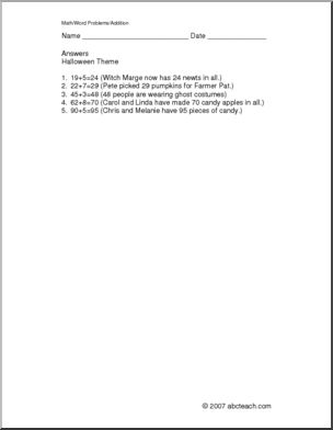 Halloween Addition (elem) Word Problems