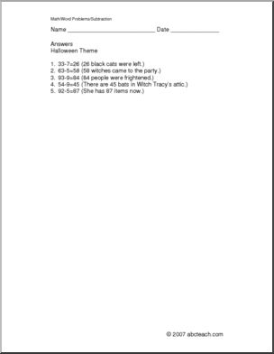 Halloween Subtraction (elem) Word Problems
