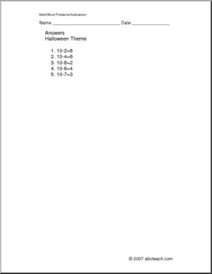 Halloween Subtraction (primary) Word Problems