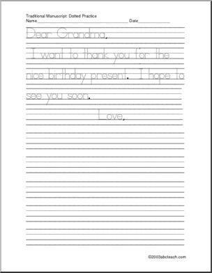 Practice worksheets with dotted letters (words and sentences)to trace, lines for writing.