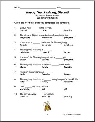 Use this ‘Book: Happy Thanksgiving, Biscuit (primary)’ printable worksheet in the classroom or at home. Your students will love this ‘Book: Happy Thanksgiving, Biscuit (primary)’. Book comprehension and vocabulary enhancement for this installment of Alyssa Satin Capucilli’s popular “Biscuit” series. A mischievous puppy helps his little girl to prepare for Thanksgiving and count her blessings.