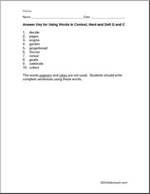 Use this ‘Worksheet: Hard and Soft C and G’ printable worksheet in the classroom or at home. Your students will love this ‘Worksheet: Hard and Soft C and G’. Using hard and soft G and C words in context. This simple page can form the basis of a review unit.