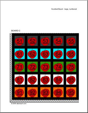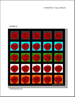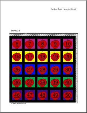 This Hundred Board – Apples (color) is perfect to practice counting skills. Your elementary grade students will love this Hundred Board – Apples (color). Large numbered board for placing “hundred board tiles”. Pictures of apples in each square.