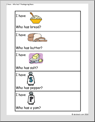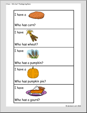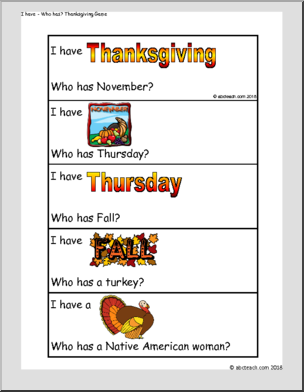 A game for the whole class to play that reinforces reading and vocabulary skills. “I have Thanksgiving, who has Thursday?” Laminate for a fun game to re-use every fall!