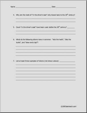 Use this ‘Comprehension: Idioms (elem/upper elem)’ printable worksheet in the classroom or at home. Your students will love this ‘Comprehension: Idioms (elem/upper elem)’. Explains the origins of some idioms, and helps students better understand the definition and use of idioms.