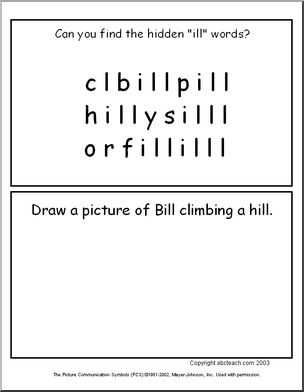 Use this ‘Word Family Booklet: “ill” words (version 2)’ printable worksheet in the classroom or at home. Your students will love this ‘Word Family Booklet: “ill” words (version 2)’. Word family booklet for the word family “ill” with pictures to color.