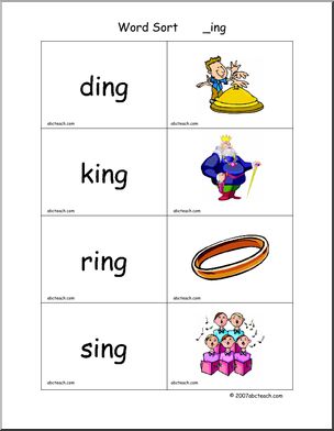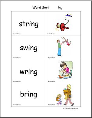Use this ‘Word Sort Center: -ing Words’ printable worksheet in the classroom or at home. Your students will love this ‘Word Sort Center: -ing Words’. Cards with words and matching pictures for words ending in -ing; these can be used in matching games and word sort center activities.