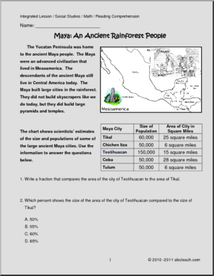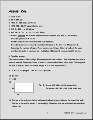 Eight pages of Math practice investigating Chichen Itza. Common Core: Geometry 6.G.A1, 5.G.B3, 4.MD.3