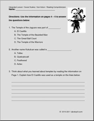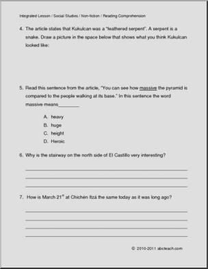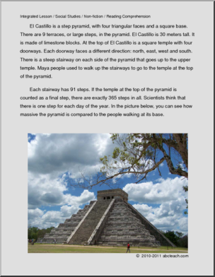 Integrated Lesson: Comprehension: Chichen Itza – Part 2 : El Castillo, the Mayan Temple of Kukulcan (upper el/middle)