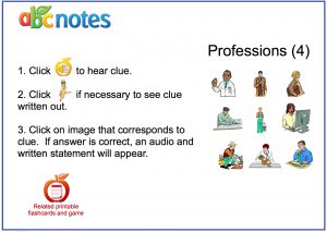 Animal vocabulary-building flashcards bearing graphic, audio, and written representations. Promethean ActivInspire .flipchart files. Suitable for early readers.