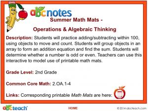 Interactive: Notebook: Math Mats: Operations & Algebraic Thinking – Summer Theme (grade 2)