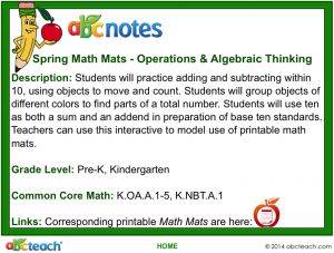 Interactive: Notebook: Math Mats: Operations and Algebraic Thinking – Spring Theme (kdg)