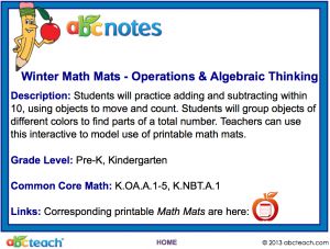 Interactive: Notebook: Math Mats: Operations and Algebraic Thinking – Winter Theme (kdg)