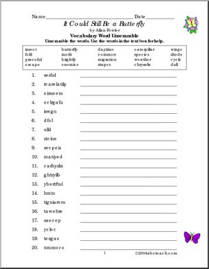 Use this ‘Book: It Could Still Be a Butterfly (elementary)’ printable worksheet in the classroom or at home. Your students will love this ‘Book: It Could Still Be a Butterfly (elementary)’. Enhances vocabulary and comprehension for Allan Fowler’s book about butterflies. (NOTE: This book may be difficult to find).