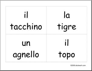 Italian: Le schede degli animali–tigre, topo, tacchino, agnello