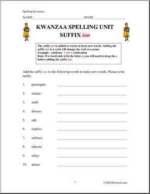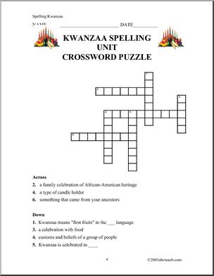Use this ‘Spelling: Kwanzaa (upper elementary)’ printable worksheet in the classroom or at home. Your students will love this ‘Spelling: Kwanzaa (upper elementary)’. From “candelabra” to “unity”, this spelling unit features spelling words related to Kwanzaa, reviewed in a word search, crossword puzzle, and ABC order page.